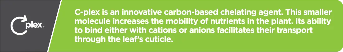 Calstik C12 C-plex is an agro-liquid with 12% calcium designed to prevent calcium deficiencies and supplement the soil’s fertility level. Calstik C12 C-plex  is chelated with the innovative C‑plex chelating agent, a small carbon-based molecule that improves absorption and promotes transport of nutritional elements in plants. This natural product does not burn leaf tissues. Its higher calcium concentration makes it an economical source. It can be used on every crop based on soil or tissue analyses or as soon as deficiency symptoms appear. For more information on Calstik C12 C-plex , consult your agronomic adviser.