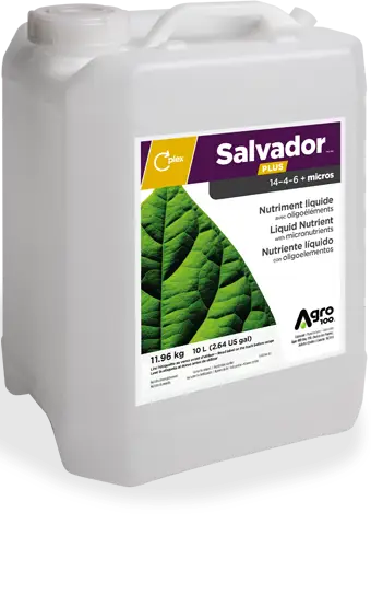Salvador PLUS est un agro-liquide qui contient un biostimulant permettant l’absorption rapide et la translocation des nutriments dans les plantes. Salvador PLUS contient du magnésium, du soufre et des oligoéléments incluant du bore, du fer, du manganèse, du molybdène et du zinc. Salvador PLUS est chélaté avec le C-plex, une petite molécule innovante à base de carbone, et par l’EDTA. Ses oligoéléments sont des cofacteurs indispensables à la production et au fonctionnement des enzymes. Salvador PLUS comprend aussi des acides fulviques qui régulent le niveau d’hormones, stimulent la division cellulaire, la croissance des racines et des feuilles, l’absorption des nutriments, améliorent la capacité antistress des plantes et favorisent ainsi la croissance et donc, le rendement des cultures. Il peut être appliqué sur toutes les cultures. Il doit être utilisé sur la base d’analyses de sol ou de tissus. Pour plus d’information sur Salvador PLUS, consulter votre conseiller agronomique.